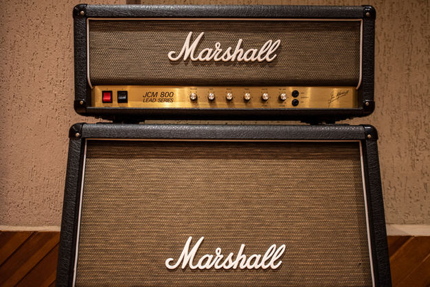 Amplificadores Marshall JCM 800, 2 Cabinet 4x12 Modern e Vintage, Vox Ac30 2x12, Ampeg PF500 1x18 e 2x10"2x 8";